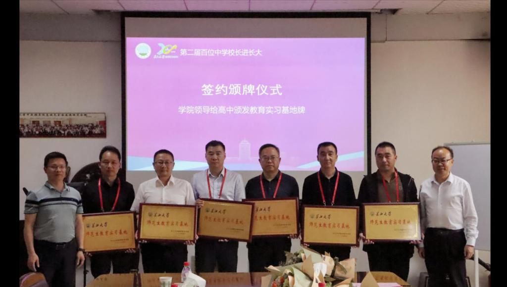 经理管锋、副经理李美求和副经理吕志鹏、张云华分别为6所高中颁发“永利yl23411官网师范生教育实习基地”“永利yl23411官网本科生培育奖”牌匾。