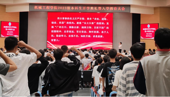 大会第五项:新生入学宣誓。在张涛同学的领誓下,永利yl23411官网全体新生举起右手,以雄浑有力的声音许下勤奋学习,自强不息的青春誓言!