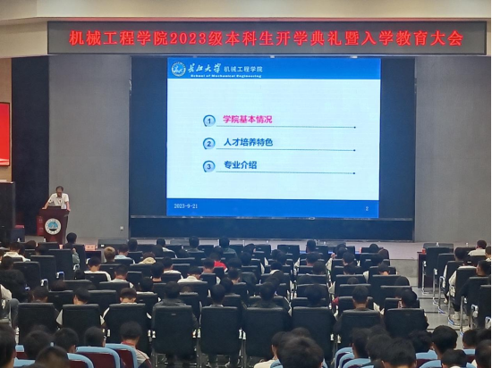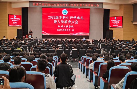大会第二项:教师代表孙巧雷副教授发言。作为专业课老师,作为班主任,他结合自己的求学,生活及成长之路,告诉2023级新同学们在机械工程的海洋里要有梦想,能坚持,敢担当,要学会低头走路,脚踏实地,懂得抬头看路,心向远方。孙老师还激励同学们要怀揣一颗爱国之心,以科学支撑强国梦想,以技术创造美好生活, 用新时代赋予青年员工的历史使命,在实现两个一百年奋斗目标的生动实践中勇挑重任。