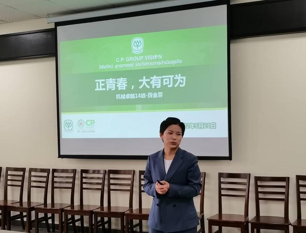 薛金蓉以《正青春,大有可为》为主题,讲述自己的大学经历和工作体验。长青传媒负责人、青马班学员、创业故事、“正大杯”冠军经历、出国游学……每一段时光都是薛金蓉成长的见证、奋斗的写实。薛金蓉说,作为青年,一定要珍惜大学时代难得的时光,一定要科学规划自己的学习生活,这是迈向成功的基石。作为职场人士,她分享自己职场经历和工作中领悟到的人生哲理,勉励学弟学妹们:只要自己足够努力,无论在哪个行业都能成功。