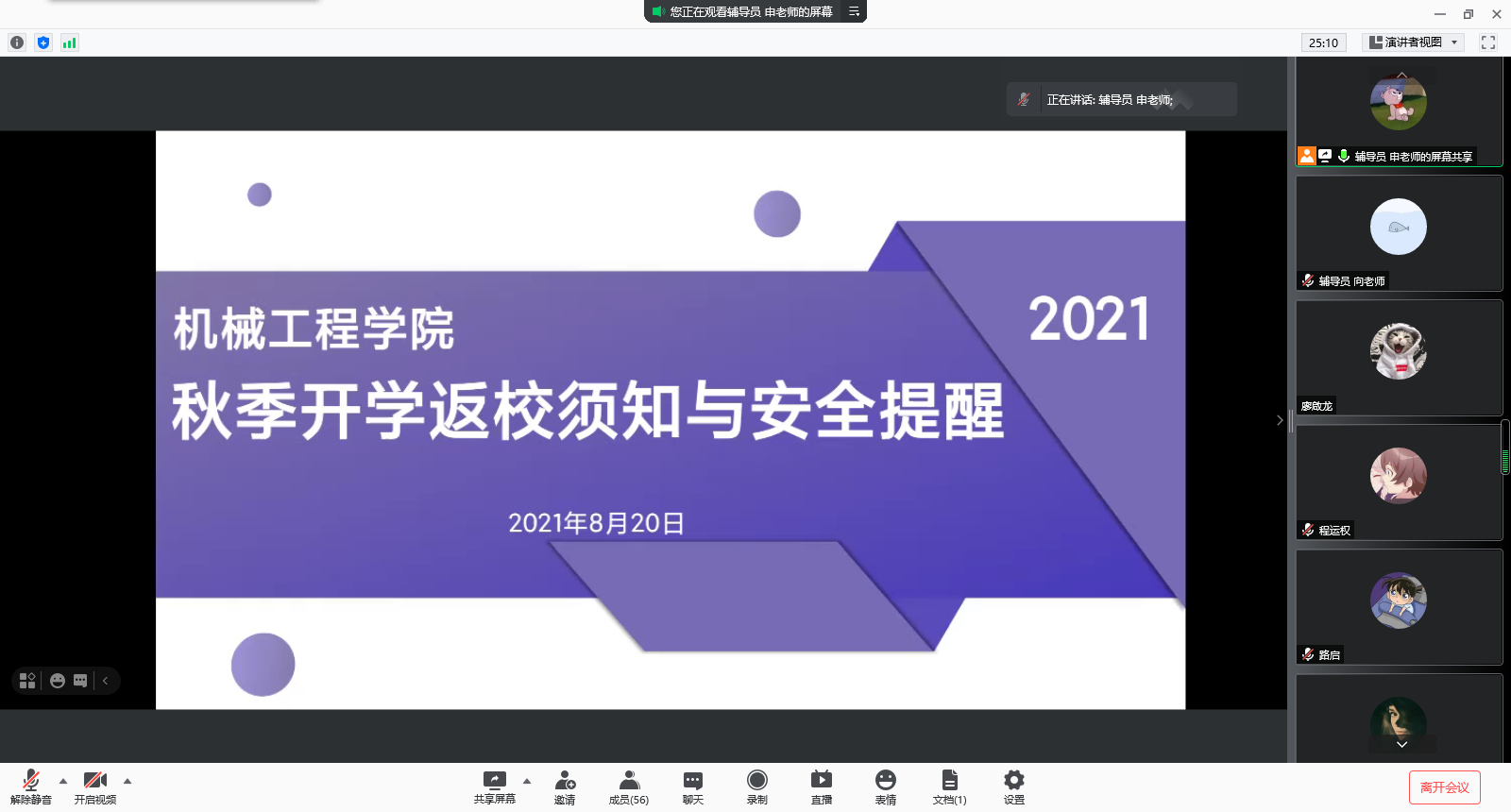 为做好2021年秋季开学返校工作,8月18日至8月20日,永利yl23411官网组织开展“秋季开学返校须知与安全提醒”专题教育,以班级为单位召开主题班会。