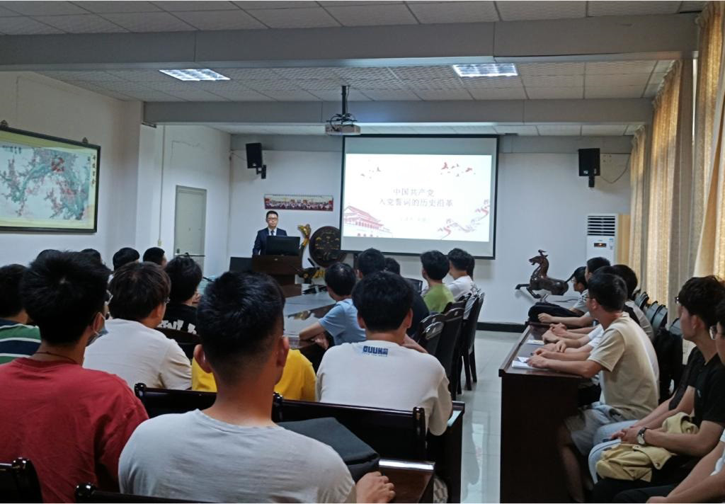 6月8日晚上,永利yl23411官网“导员毓语”第二讲在7教305会议室举行,辅导员申旭以《中国共产党入党誓词的历史沿革》为题,为全体预备党员进行党史教育。