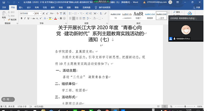 10月12日下午,永利yl23411官网十月主题团会在线上召开,全体团支书及组织部成员参与了本次团会。