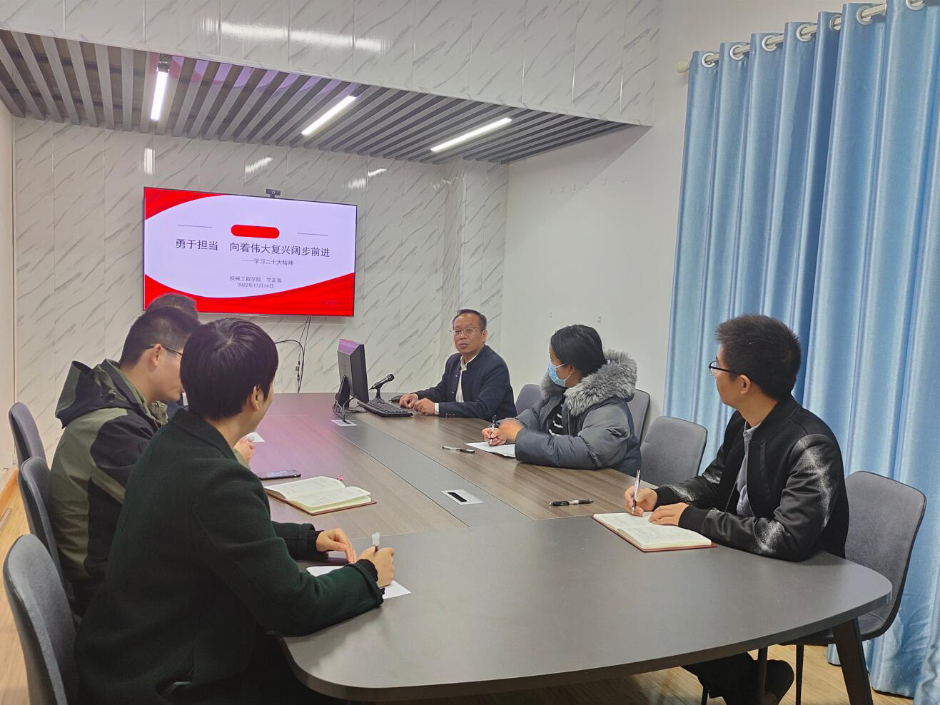 11月14日下午,竺正海以《勇于担当,向着伟大复兴阔步前进》为题目,给永利yl23411官网全体辅导员讲授党课。